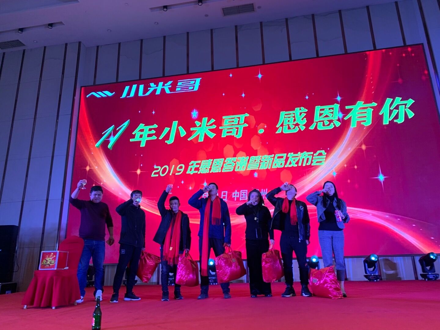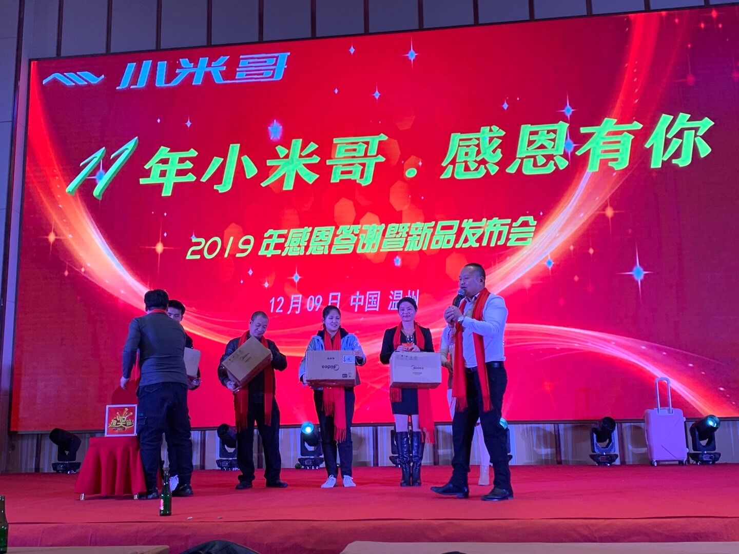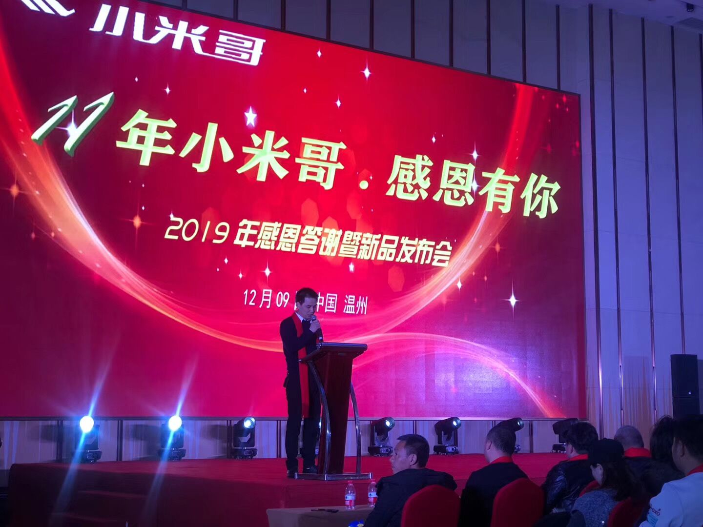 12月09日,小米哥公司在温州皇家花园大酒店举行一年一度的年终答谢暨新品发布会,各区域经销商朋友从各地聚集在一起,共同讨论并总结即将过去的一年里,对销售工作做了汇报,大家共同研讨新的一年的发展战略及市场拓展方向